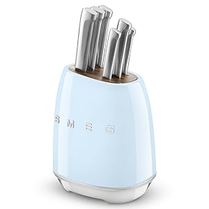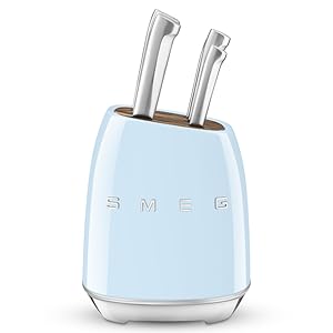 EASY TO CLEAN: powder-coated carbon steel exterior in glossy Cream to coordinate with other SMEG countertop appliances, and the anti-slip feet keep the block from sliding around when you remove a knife. Hand wash only