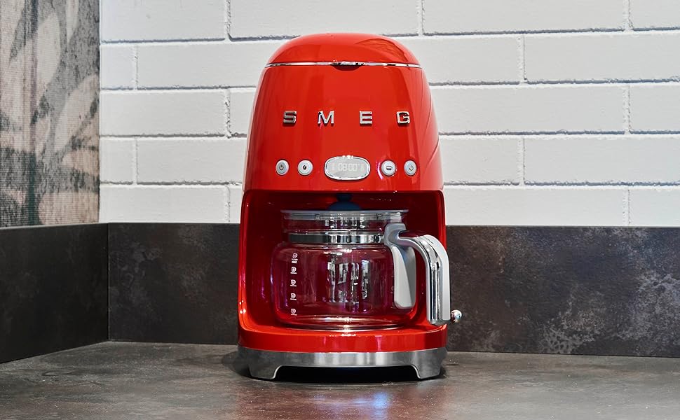 - Design: STYLISH throwback to 1950’s era Appliances- Coffee machine comes complete with anti-slip feet, A user friendly control panel, and water level indicator. Unit also includes a sleek 10-cup capacity glass carafe.
