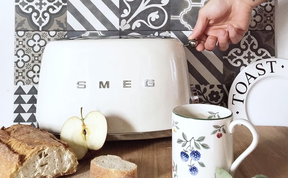 The SMEG 2-slice toaster is the perfect morning assistant, packing functionality and ergonomics into its visually appealing design.